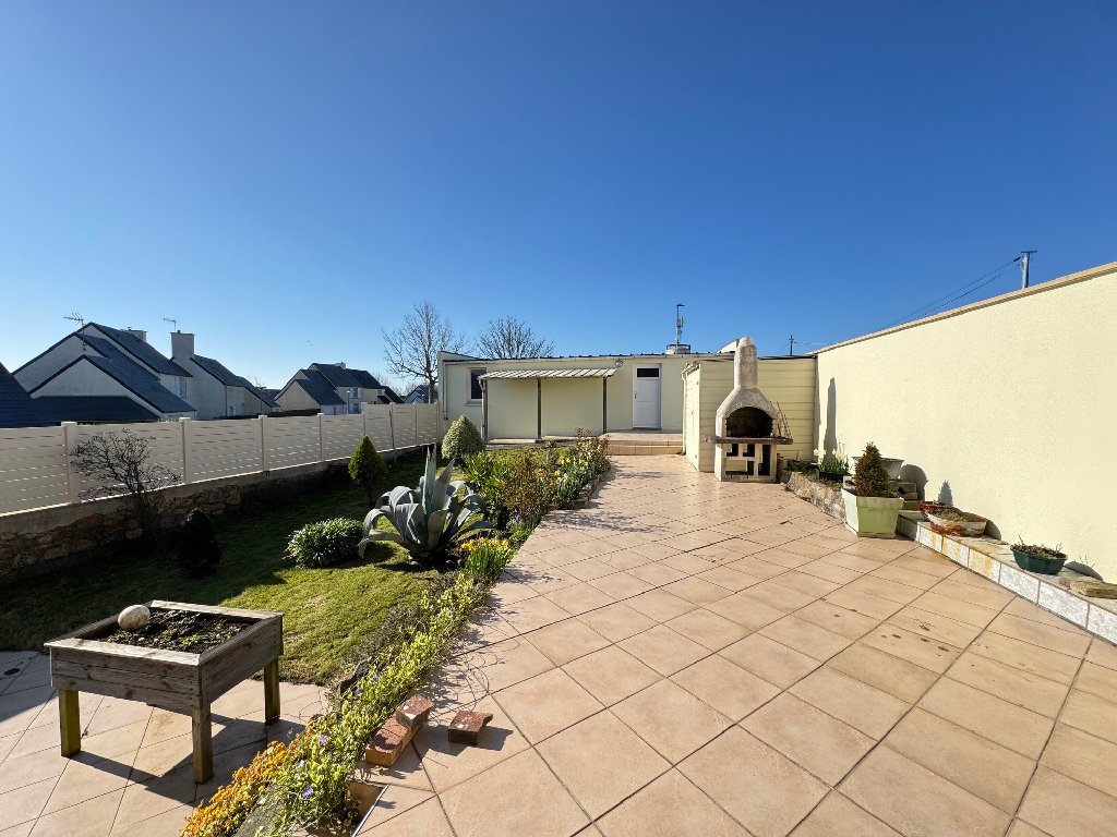 Belle terrasse exposée sud avec barbecue, jardin, cabanon en bois et garage indépendant, le tout pour environ 438 m².